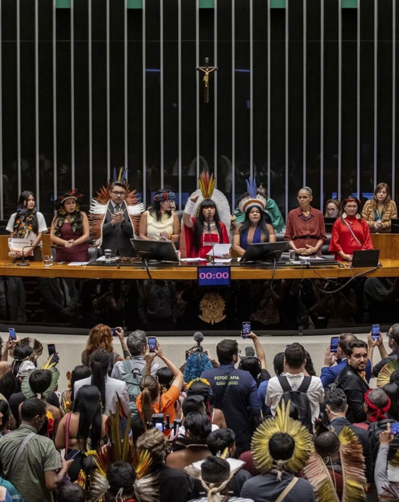 […] “a senhora Silvia Nobre Lopes, do Partido Liberal do Amapá, que usa o nome Waiãpi e está apoiando o Bolsonaro, não representa nosso povo Wajãpi, ela não faz parte das nossas organizações representativas e não pode falar em nosso nome. […] Nós somos contra as propostas do Bolsonaro e da Sílvia de exploração das Terras Indígenas para mineração, garimpo, agronegócio, extração de madeira e outras atividades que destroem a floresta. Nós lutamos pela demarcação de todas Terras Indígenas no Brasil e contra o Marco Temporal. […] Não aceitamos que o nome do nosso povo seja usado para apoiar esse presidente genocida e as propostas da bancada ruralista no congresso.” (APIB, 2025).